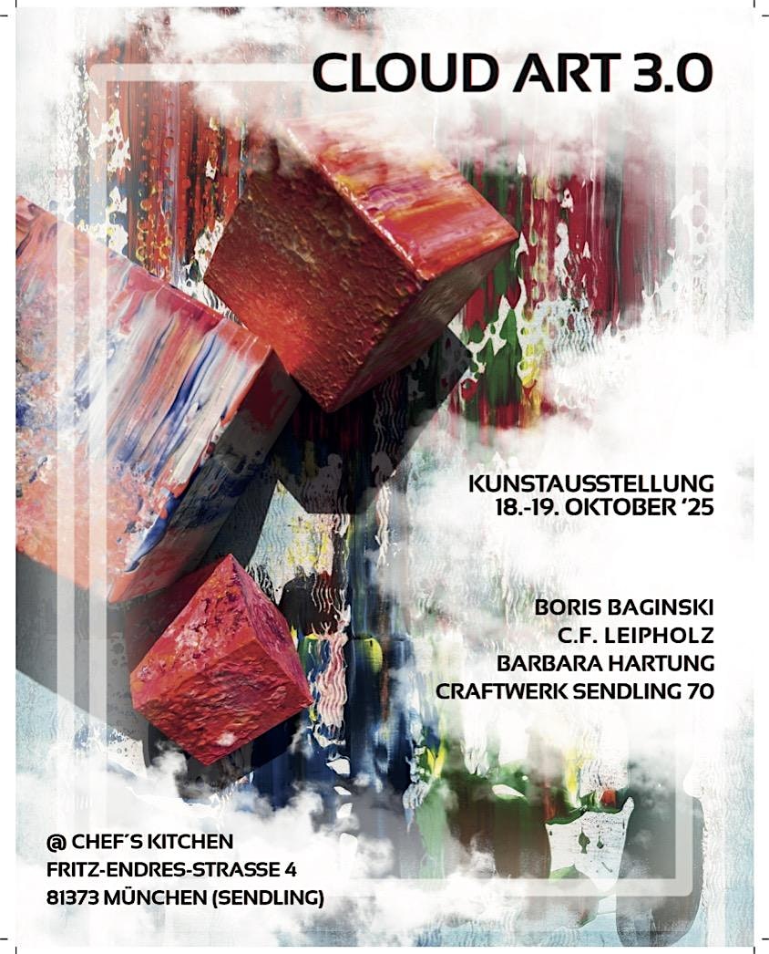 Chef's Kitchen Fritz-Endres-Straße 4, MünchenJoin us for a fun morning of creating cloud art and enjoying a delicious brunch at CLOUD ART 3.0CLOUD ART 3.0 & BrunchAbstract Art Exhibition | KunstausstellungMunich, 18.–19. October 2025🔸 ARTISTSBoris BaginskiC.F. LeipholzBarbara HartungCraftwerk Sendling 70🔸 LOCATIONChef’s KitchenFritz-Endres-Straße 481373 München (Sendling)🔸 OPENING HOURSSaturday, 18.10 | 14:00 – 22:00Sunday, 19.10 | 10:00 – 16:00🔸 VERNISSAGESaturday | […]